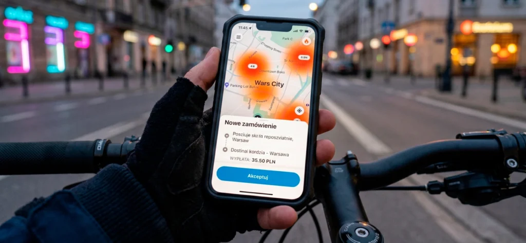 - Czas online. Dyscyplina i długość zmiany mają znaczenie. Im dłużej jesteś dostępny w systemie, tym większa szansa na złapanie „łańcucha” opłacalnych zamówień, gdy nowe zlecenie trafia do Ciebie jeszcze przed zakończeniem obecnego, eliminując puste przebiegi.